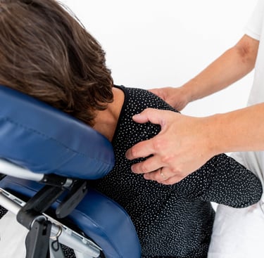 un massage sur chaise érgonomique , idéal pour un mieux être en entreprise.