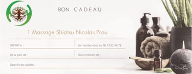 Rien de plus simple pour les anniversaires, mariages, naissances, Noël, fête des mères, offrez un bon cadeau massage sur mesure à ceux que vous aimez. Des bons cadeaux pour des Massages bien-être, relaxant, énergétiques.